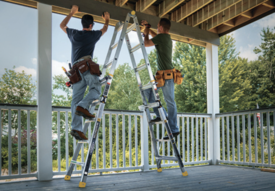 Werner offered the new Multi-Position Pro with dual-sided leveling. The ladder works for a variety of uses — as a stepladder, as an extension ladder, or on a stairway. Each side of the ladder adjusts up to 7 inches to provide solid footing on uneven ground. wernerco.com/us