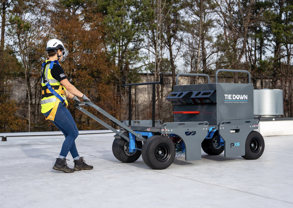 Tie Down’s Penetrator X5 Sentinel mobile fall protection system provides fall arrest safety for five workers and an additional two workers in restraint, all at same time. The Penetrator X5 Sentinel can be used on concrete or EPDM and TPO roofing applications. Premium non-flat tires allow for quick relocation. tiedown.com