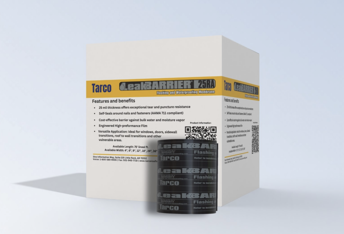 Tarco’s LeakBarrier 25RA is a cost-effective, durable, and premium-grade SBS self-adhered flashing membrane that is specially engineered for superior performance in both vertical and sloped applications. This product offers exceptional tear and puncture resistance, offering a robust defense against the harshest elements. www.tarcoroofing.com